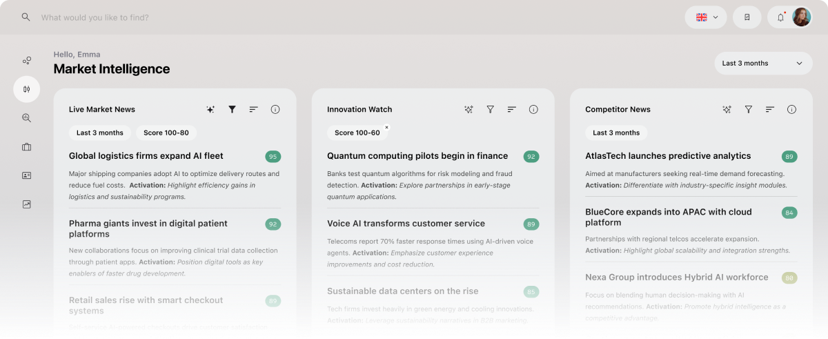 Discover what’s shaping your business landscape in real time. Identify and surface the hottest themes currently driving industry conversations – designed to help you track, interpret, and act on emerging trends with ease.