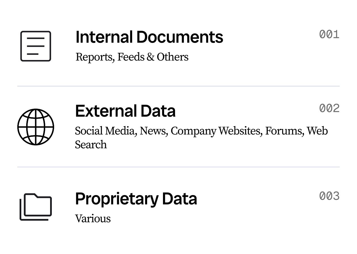 AInnov8 pulls in fragmented data from across your landscape and serves it on a silver platter, fully transparent and ready to act on. But we don't stop at the obvious. Our platform surfaces the early signals and subtle nuances that most tools bury or miss entirely – giving you the edge of knowing what's coming, not just what's happened.